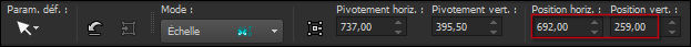 Activez l'outil "Sélectionner" (K) et modifier les positions de X (692,00) et Y (259,00):