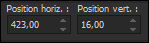 Activez l'outil "Sélectionner" (K) et modifier les positions de X (423,00) et Y (16,00):