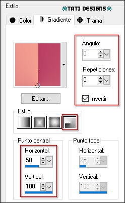 Haz clic en el color del primer plano y prepara el siguiente gradiente: