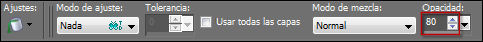 Activa la Herramienta "Bote de pintura" (F) y pon la Opacidad a 80: