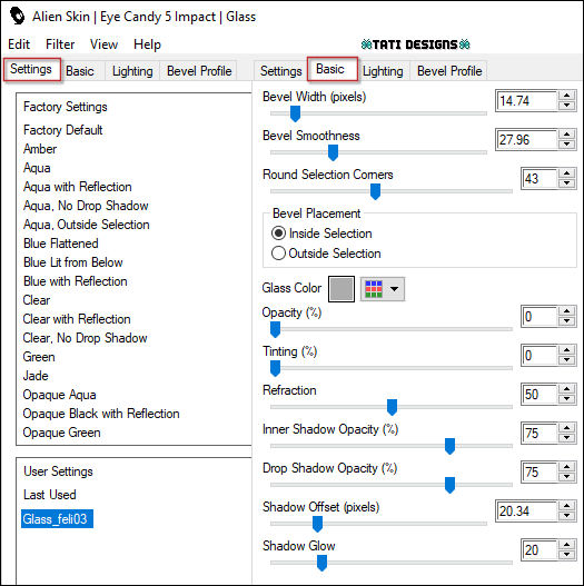 en "Settings", selecciona el preset "Glass_feli03":