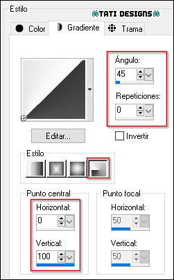 Haz clic en el color del primer plano y prepara un gradiente "Primer plano-fondo"