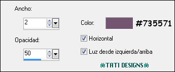 Efectos / Efectos 3D / Sombra: 2 / 2 / 100 / 0 / Color: #735571