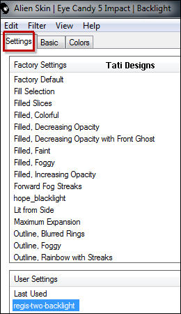 selecciona el preset "regis-two-backlight":