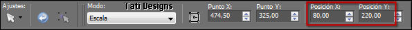 Establece 80 en la Posición X y 220 en la Posición Y: